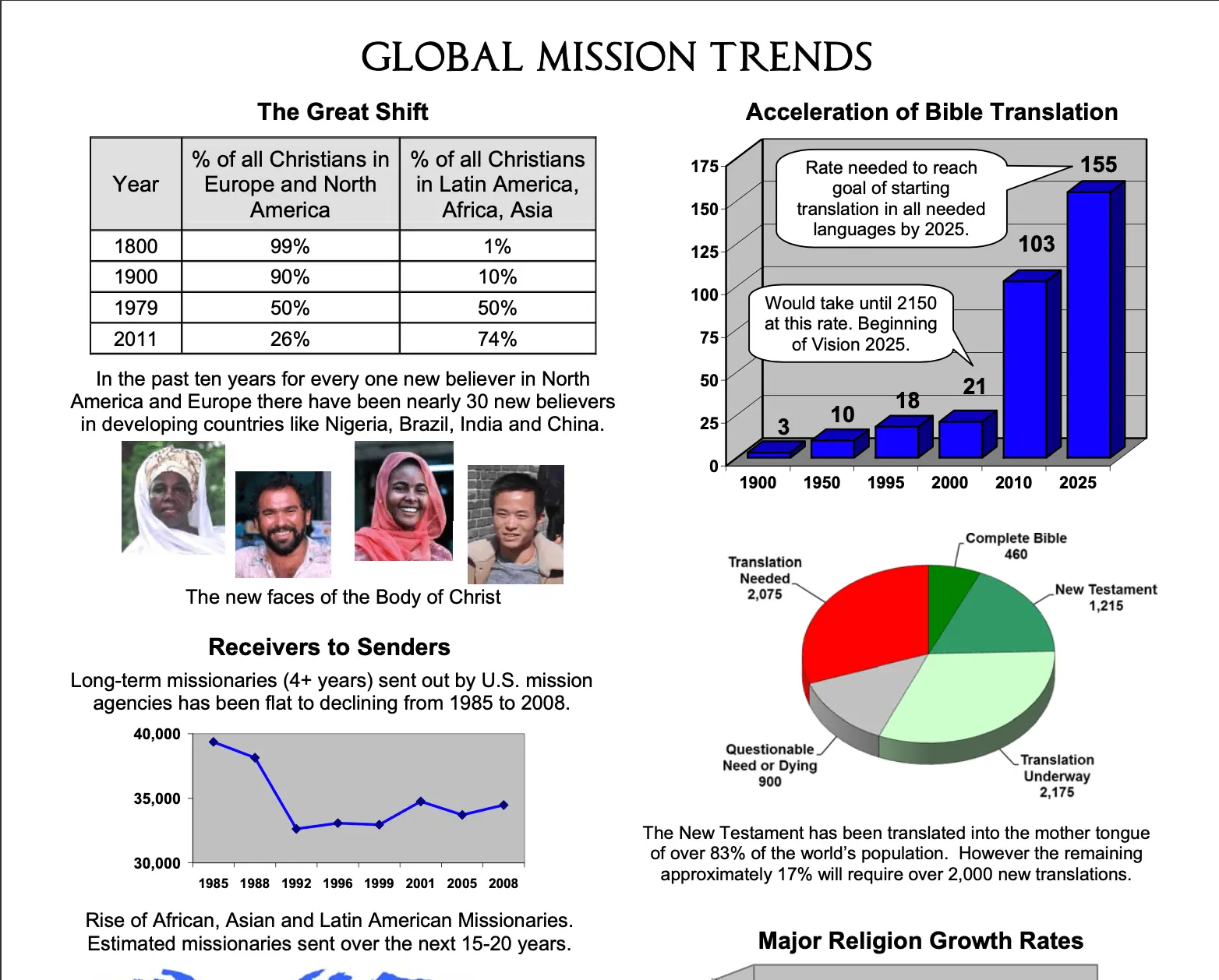 More than 3,400 million people (3.4Billion), which is more than one-thirds of all humanity, have yet to be evangelized. We are ashamed that so many have been neglected; it is a standing rebuke to us and to the whole Church. There is now, however, in many parts of the world, an unprecedented receptivity to the Lord Jesus Christ. We are convinced that this is the time for churches and para-church agencies to pray earnestly for the salvation of the unreached and to launch new efforts to achieve world evangelization. A reduction of foreign missionaries and money in an evangelized country may sometimes be necessary to facilitate the national church’s growth in self-reliance and to release resources for unevangelized areas. Missionaries should flow ever more freely from and to all six continents in a spirit of humble service. The goal should be, by all available means and at the earliest possible time, that every person will have the opportunity to hear, to understand, and to receive the good news. We cannot hope to attain this goal without sacrifice. All of us are shocked by the poverty of millions and disturbed by the injustices which cause it. Those of us who live in affluent circumstances accept our duty to develop a simple life-style in order to contribute more generously to both relief and evangelism.